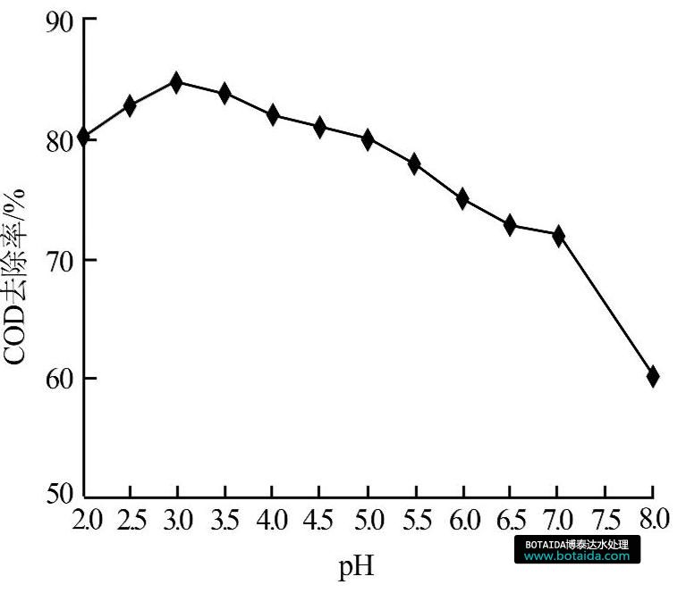 圖4 pH對廢水COD去除率的影響