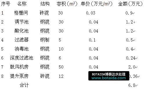 污水站配人員1名,800元/月•人,則日人工費26.7元,年人工費9600元。