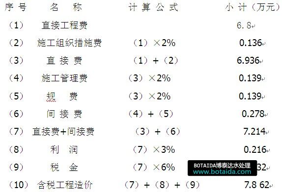 工程調試費=(土建工程費+設備設施及器材購置及安裝費)×2%=(7.862萬+9.25萬)×2%=0.342萬。