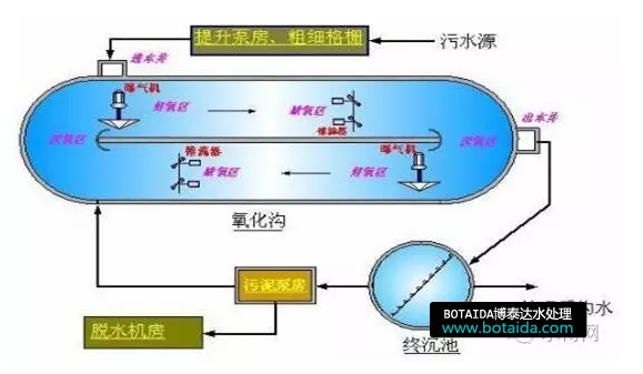 特點(diǎn)是:混合液在溝內(nèi)不斷地循環(huán)流動(dòng),形成厭氧、缺氧和好氧段。
