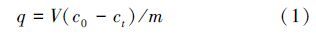 磷吸附量q按式(1)計算: