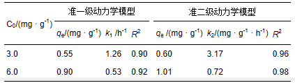 式中,qt和qe分別為t時刻和平衡態時的吸附量(mg · g-1),k1為準一級吸附速率常數(h-1),k2為準二級吸附速率常數(g · mg-1 · h-1).