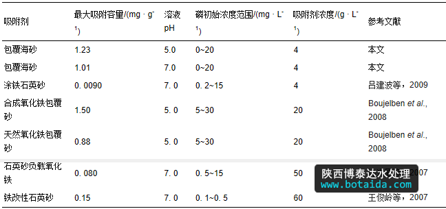 表3 文獻報道的負載改性砂吸附劑的磷吸附效果