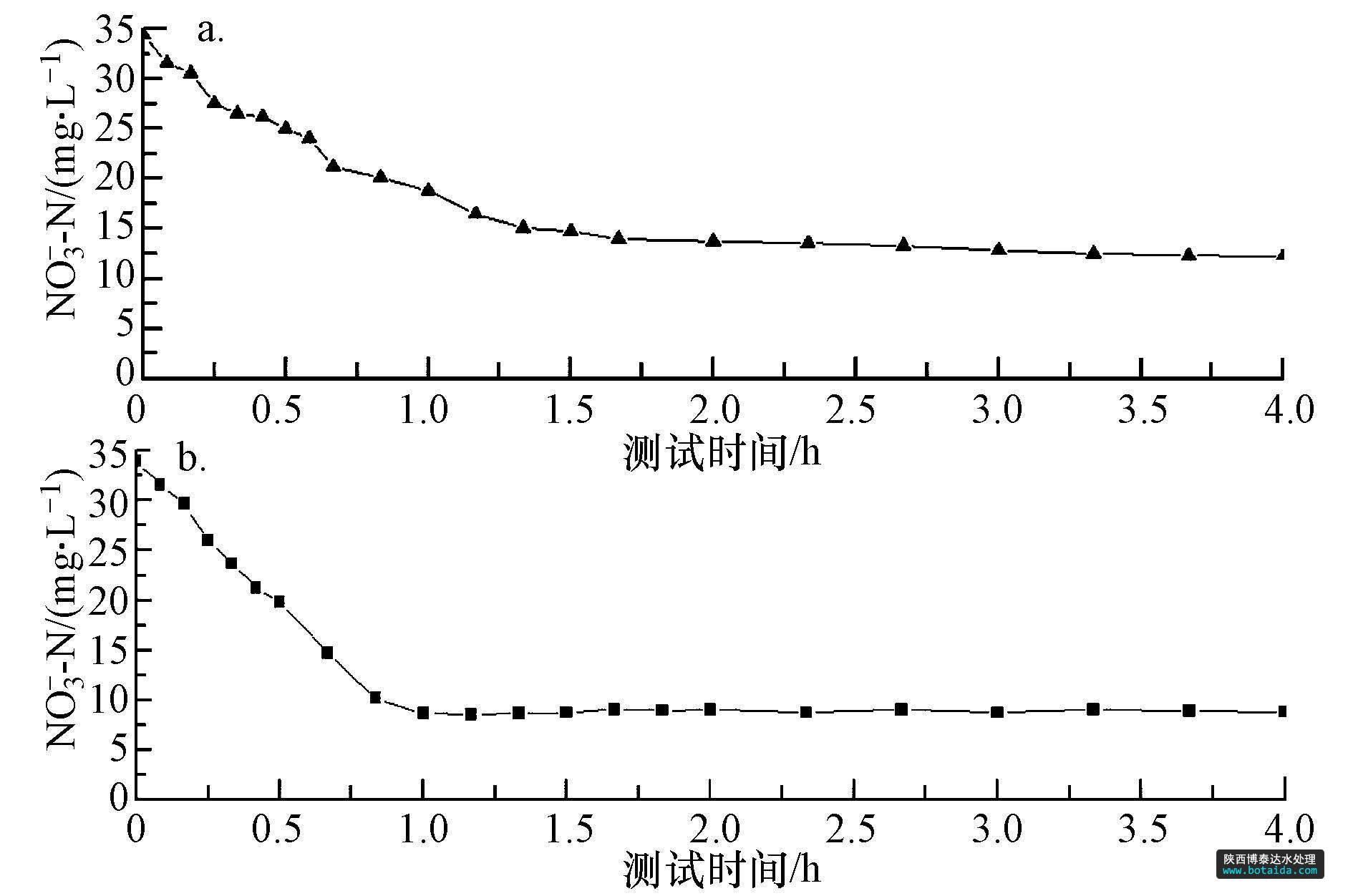 圖5 反硝化測試曲線(a.未優化組(僅MW-H2O2-OH預處理)的污泥上清液(徐榮樂,2014);b.優化組(MW-H2O2-OH預處理并去除殘留H2O2+水解酸化)的污泥上清液)
