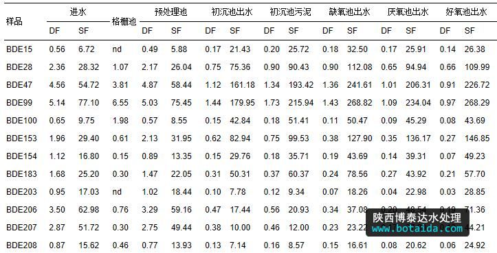 3.1 污水和污泥中PBDEs濃度和同系物組成