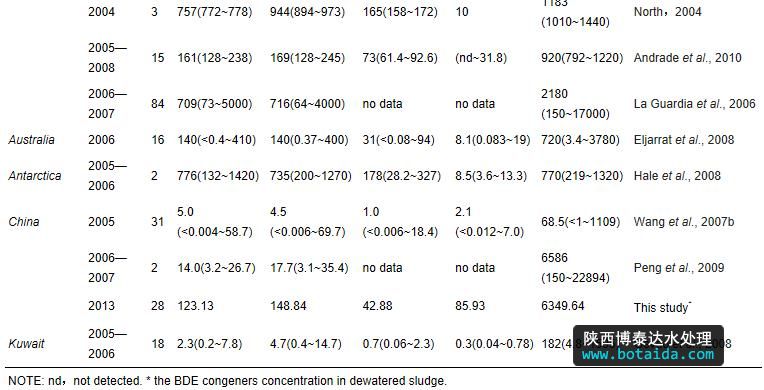 3)污水和污泥是環境中PBDEs的一個重要來源,但是對環境的影響有限,特別是污泥農用.