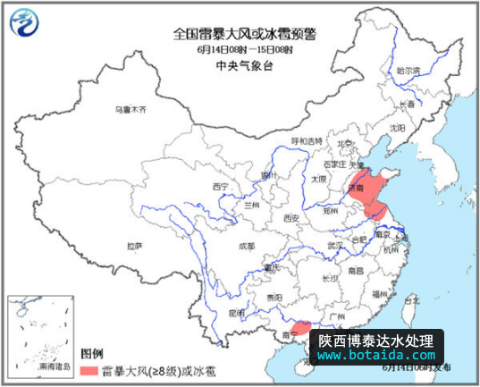 陜西博泰達水處理科技有限公司提醒大家:雷暴大風可能造成棚舍和廣告牌等搭建物的倒塌,并對高空作業和水域作業產生影響,短時強降水可能引起城市內澇阻礙交通。北京、天津等地需提前做好大城市的防汛、防內澇工作;華北和黃淮東部等麥收區需抓住晴好天氣搶收小麥,防范雷暴大風、冰雹等強對流天氣的影響。