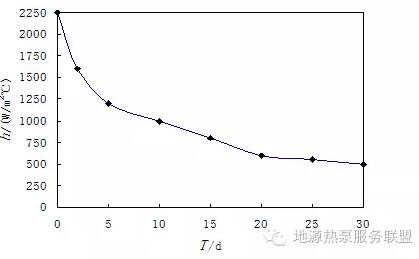 圖6 某地表水源熱泵工程換熱器熱熱量衰減幅度圖