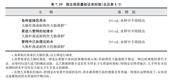 表7.10列出了飲用水的微生物質量驗證準則值。表中的單個數值不能直接使用。應 當和本準則及其他支持性文件中的信息資料配套使用并加以解釋。陜西博泰達水處理為您提供服務