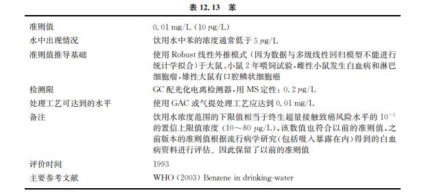 苯主要用于其他有機化合物的生產。苯存在于石油中。汽車尾氣是環境苯的主要來 源。苯有可能通過工業排放和大氣污染進入水體(見表12.13)