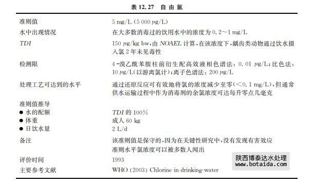 人類和動物接觸飲用水中的氯,沒有觀察到與水處理相關的特殊有害效應。IARC將 次氯酸鹽列為第3組(現有的證據不能對人類致癌性進行分類)。