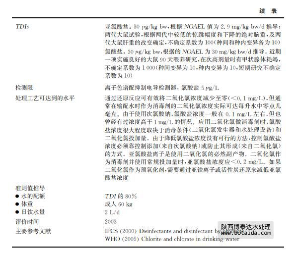 二氧化氯已被證明在試驗(yàn)小鼠圍產(chǎn)期會(huì)損害其神經(jīng)行為和神經(jīng)發(fā)育。在飲用水研究 中,接觸二氧化氯的老鼠和猴子也已觀察到會(huì)伴有甲狀腺激素顯著抑制的現(xiàn)象。尚未確定 二氧化氯的暫行準(zhǔn)則值,因?yàn)樗杆偎鉃閬喡人猁},而亞氯酸鹽的暫行準(zhǔn)則值能夠充分防 止二氧化氯的潛在毒性。該化合物的味覺閾值和嗅覺閾值是0.4mg/L。