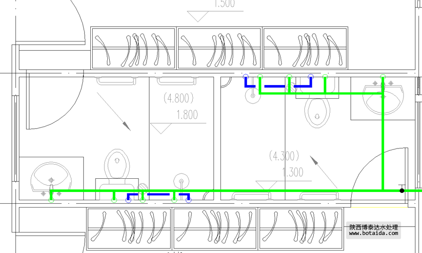 衛(wèi)生間給水和熱水,藍(lán)色為熱水管,綠色為給水管