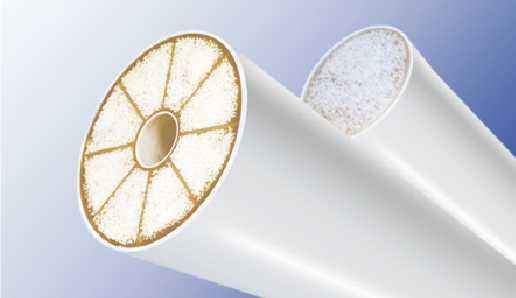燒結活性炭濾芯(CTO):復合燒結活性炭棒凈水器的主要過濾介質為活性炭棒。活性炭棒通常由不同粒徑的活性炭粉和粘接材料高溫燒制而成。其特點由于活性碳粉的多孔結構(據估算,3~5克活性碳粉的比表面積相當于一個標準美式橄欖球場大小),燒制之后的活性碳棒非常致密,對于自來水中的異味、氣味、余氯和揮發性有機物等污染物具有很高的去除效率,部分廠家生產的優質活性炭棒甚至可以按照NSF53標準過濾孢子孢囊,無需使用微濾、超濾等額外的過濾介質。由于復合燒結活性炭棒的優異性能,該類產品可以直接用于飲用、烹飪等過濾要求很高的場合,也可以用作超濾、反滲透等凈水器最后一級改善過濾效果。