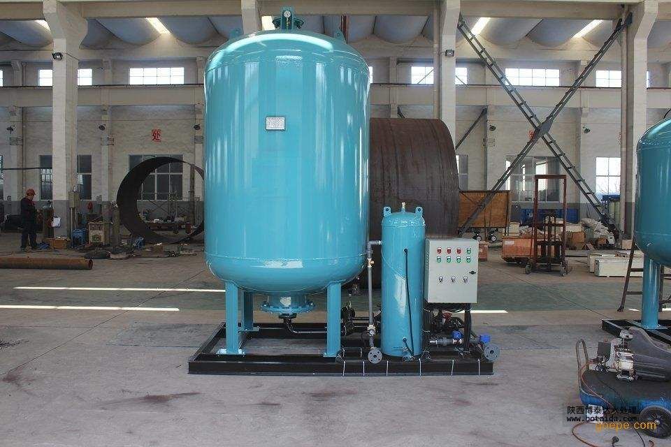 自動定壓補水裝置的真空脫氣罐采用技術措施,把膨脹部分和氣壓穩壓部分分開設置,可使系統的絕大部分膨脹量儲存于隔離的膨脹器中,設備的體積利用率可達90%以上,因此整機體積、高度大為縮小,節約用地50%——60%。便于設備布置、安裝,又節約了機房的土建成本。