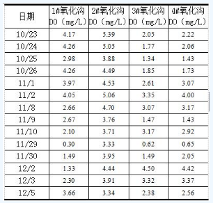 表3 各氧化溝實測DO數據