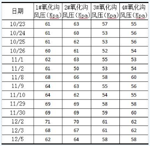 表2 各氧化溝運行風壓數據