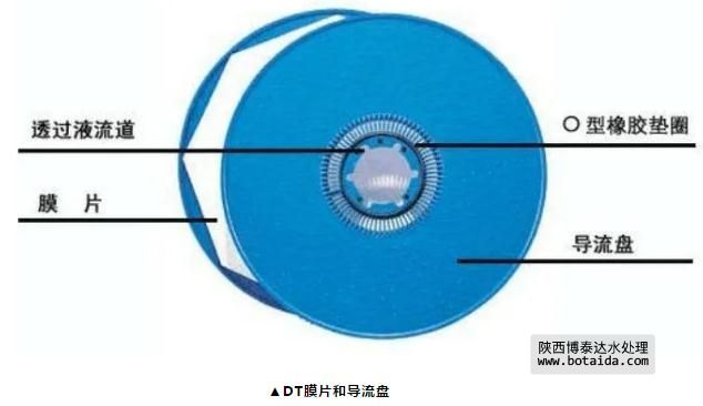 在該工藝中不需要實現污染物質的最終去除,僅為分離作用,因此,運行能耗大大降低;DT組件內部任何單個部件均允許單獨更換。過濾部分由多個過濾膜片及導流盤裝配而成,當過濾膜片需更換時可進行單個更換,對于過濾性能好的膜片仍可繼續使用,這最大程序減少了換膜成本。