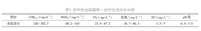 采用鐵碳-砂濾組合進(jìn)行強(qiáng)化除磷,相比化學(xué)法,操作簡單,維護(hù)量小,從而為鐵碳-砂濾的深度除磷工藝在農(nóng)村生活污水中的應(yīng)用,一級脫氮除磷強(qiáng)化提供解決思路。為分析鐵碳-砂濾除磷工藝實(shí)際工程中的除磷效果,將該工藝應(yīng)用于蘇州市金庭鎮(zhèn)某一農(nóng)村生活污水處理項(xiàng)目。該項(xiàng)目污水處理系統(tǒng)采用固定床生物膜工藝,為防止鐵碳板結(jié)鈍化,裝置通過特殊結(jié)構(gòu)設(shè)計(jì),通過機(jī)械方法使鐵碳運(yùn)動,互相摩擦去除氧化膜,避免長時(shí)間電解過程中陽極鈍化及鐵碳板結(jié)問題。項(xiàng)目區(qū)生活污水水質(zhì)情況如表1所示。