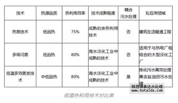 如低溫熱利用技術對比表所示,較常規熱泵技術和多級閃蒸技術,低溫多效蒸發在熱利用率、技術工藝耦合污水處理等方面具有明顯優勢,代表了相關技術領域的發展方向,是開展余熱利用和污水處理耦合技術的重點方向。