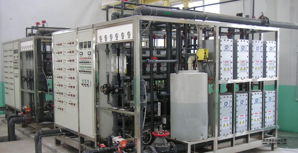 EDI裝置屬于精處理水系統,一般多與反滲透(RO)配合使用,組成預處理、反滲透、EDI裝置的超純水處理系統,取代了傳統水處理工藝的混合離子交換設備。EDI裝置進水要求為電阻率為0.025-0.5MΩ·cm,反滲透裝置完全可以滿足要求。EDI裝置可生產電阻率高達15MΩ·cm以上的超純水。